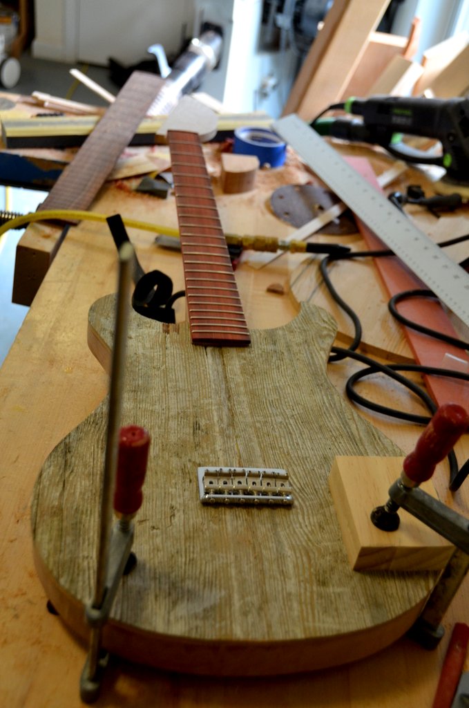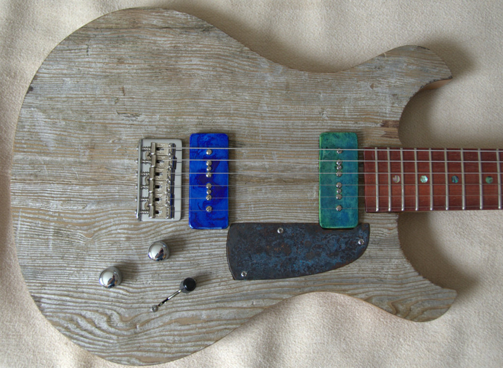 I wonder how long this plank of wood was floating around in the bay. It may have been in the sea for a few years. What are the odds that someone would come along, find the wood and make a guitar or two from it?