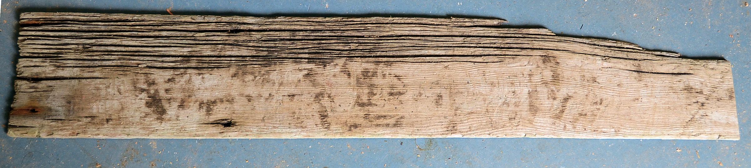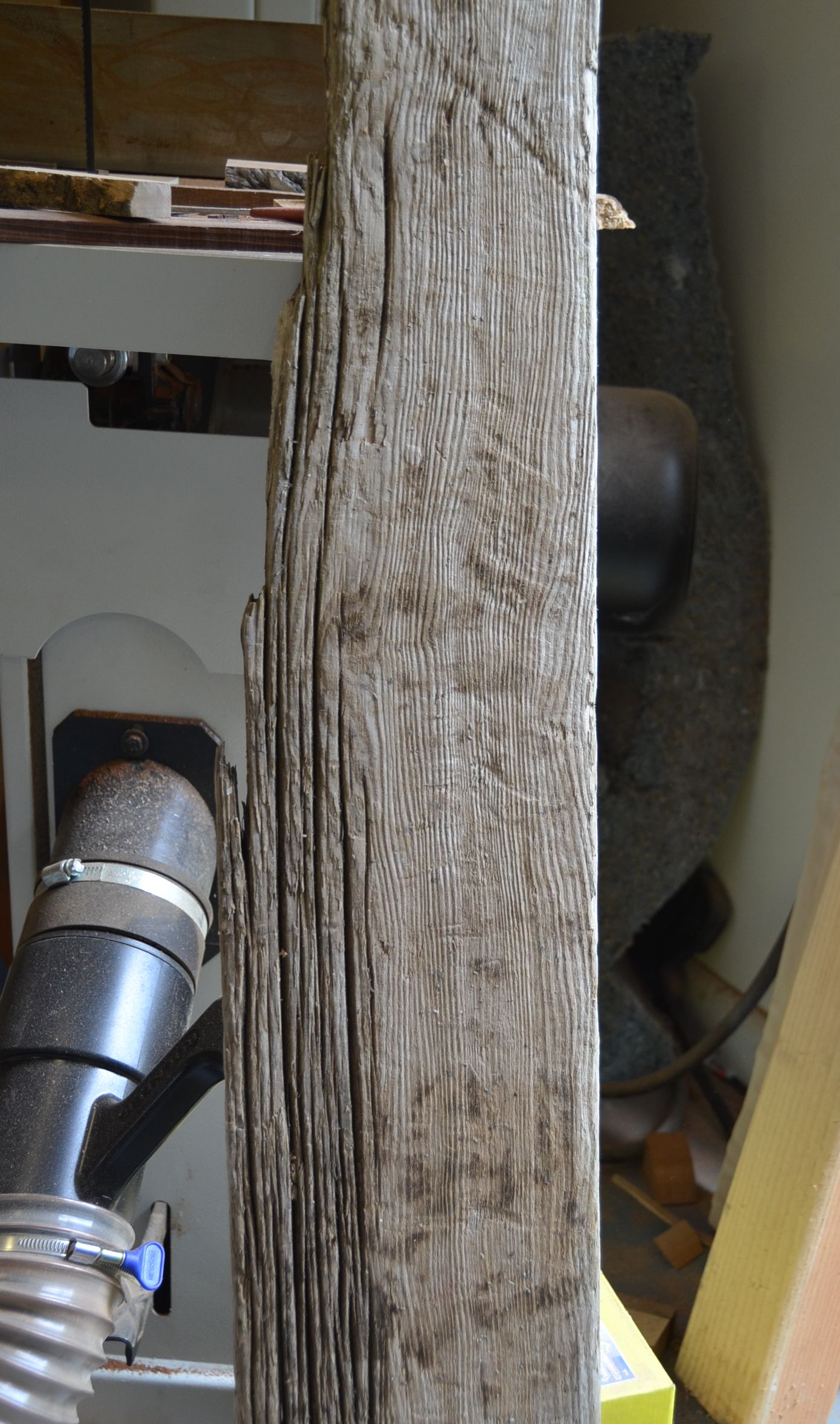 One evening I found an old plank of driftwood and took it home to dry out for a few months. I think it is cedar, happily it wasn’t pressure treated. I lopped off the top quarter inch or so and flitch matched it to create the top of Driftwood 1. The middle section of this plank was surprisingly unaffected by the saltwater, and had a nice grain. I cut a half-inch or so from the center to use as a top for Driftwood 2.
